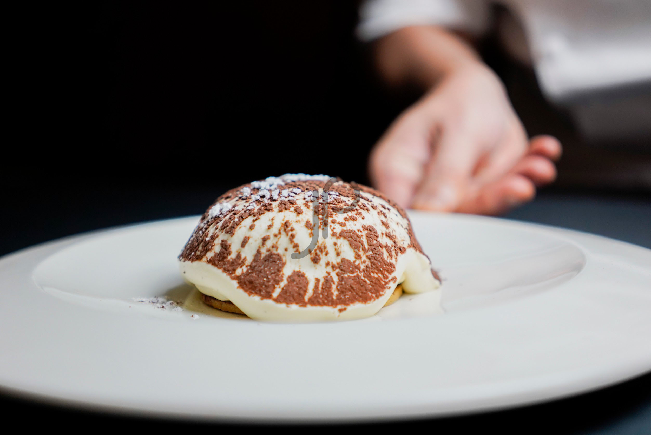 It is a very eye-catching dessert that the waiter will help you to experiment when removing the transparent cover and let the light mascarpone cream falls all around the base made of lady finger sponge, coffee crumble and coffee jelly